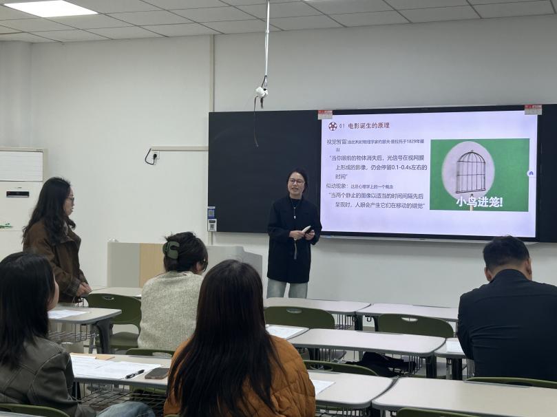 动画教研室的张芳敏老师在《影视鉴赏》课堂上,巧妙地将视觉原理、摄影术突破、摄像实验与放映技术等专业知识,融入一个个生动的案例之中。使观众亲历电影从无到有的关键节点,在趣味与启发中,真切触摸到推动电影诞生的那些重要实践与技术飞跃。