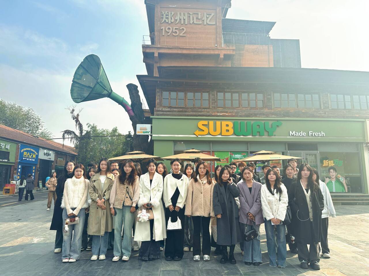 下午,师生团队转场至郑州记忆・油化厂创意园,开启一场艺术调研之旅。作为充满工业风情与创意活力的文化园区,这里成为同学们汲取艺术灵感的重要源泉。调研过程中,同学们围绕专业核心需求,重点考察了园区整体视觉导视系统设计、入驻商家品牌视觉导视系统、园区内的艺术装置作品,同时对文创产品的类型、表现形式及材质运用进行了系统梳理与记录。通过实地观察、交流探讨,同学们积极收集专业创作素材,深入挖掘创意设计的多元表达,为后续的艺术创作积累了丰富灵感。
