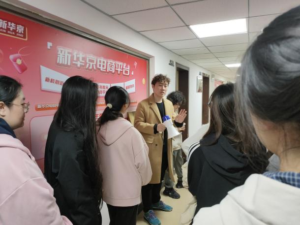 为深化动画专业学生对行业岗位的立体认知,推动课程内容与就业需求紧密衔接,近日,在艺术学院专业教师的带领下,2023级动画专业学生赴合作企业——郑州京选教育科技有限公司,开展了一场沉浸式企业实践学习活动。作为动画专业校外实习实训基地,郑州京选教育科技有限公司深耕电商领域,具备丰富的商业账号运营经验。在企业负责人引导下,同学们依次走访了视频制作部、账号运营部等核心部门,近距离观摩短视频从创意制作到市场推广的全流程运作,直观理解动画技术在真实商业场景中的应用逻辑。
