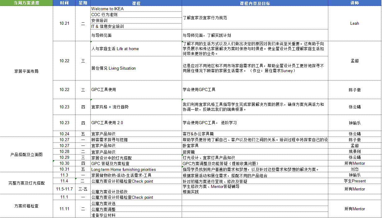 学生参加实践营期间,我院环境设计教师与宜家设计师共建为期20天的实践课程,从Welcome to IKEA、宜家产品知识、公寓方案设计及修改,到最后的方案设计汇报,每天干货满满,收获颇多。