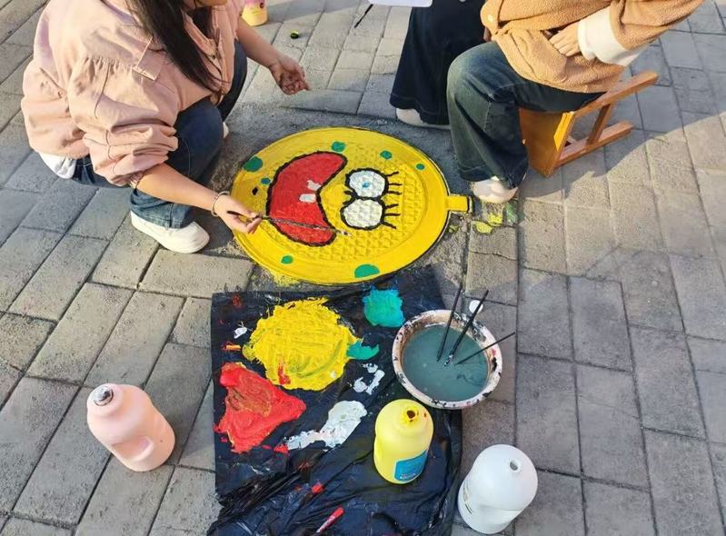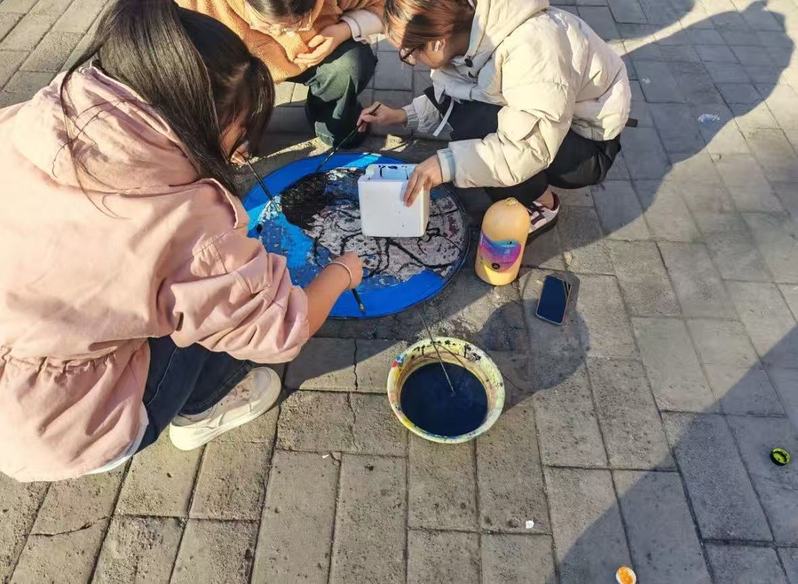 在这个充满无限可能的时代,每一笔色彩都是青春的注脚,每一次创作都是心灵的绽放。GO DREW涂鸦社举办了“妙笔涂鸦,‘井’上添花”主题绘画活动,同学们在艺术大楼前后参与了井盖涂鸦,为校园的角落增添了一抹色彩。
