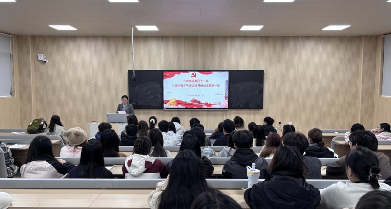 为引导入党积极分子深刻把握党的理论精髓、明晰培训方向,2025年10月17日中午,艺术学院于艺术大楼Y103举办第四十一期入党积极分子开班仪式暨党课第一讲。学院党委书记李帅、党委组织委员胡颖,第四十一期入党积极分子参会,会议由胡颖老师主持,学生第一党支部张瑜老师主讲。