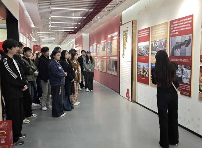 在讲解员的引导下,师生依次走进“理论溯源”“实践探索”“时代赋能”等主题展区。展区内全方位呈现思想伟力与时代价值;珍贵文献、历史影像与情景模拟场景有机结合,以直观鲜活的形式传递思政理论内涵,不仅让我院师生近距离接触了马克思主义经典文献,更深化了对“真理之光”的理解,进一步认识到坚守理想信念、传承红色基因的重要意义,明确了新时代青年肩负的历史使命与责任担当。