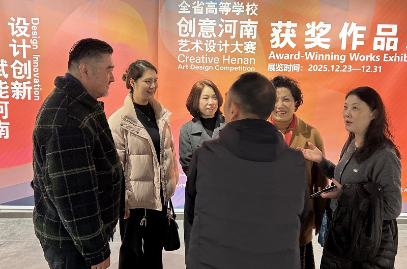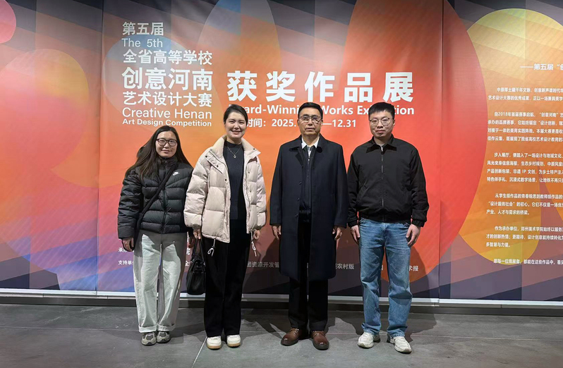 12月25日,第五届全省高等学校“创意河南”艺术设计大赛获奖作品展开幕式暨“豫见创意,设计未来”河南高校设计教育高质量发展研讨会在郑州美术学院图书馆隆重举行。艺术学院院长牛琳琳、艺术实验中心主任王雄、环境设计专业教师武钾赢受邀参会,与全省高校设计领域专家学者共探人才培养新路径、共话设计教育高质量发展。