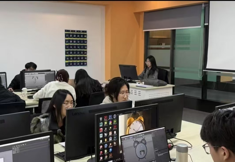 动画教研室王佩琪老师在《三维模型》课程中系统讲解了从基础命令到复杂模型构建的教学设计与实操演示,杜岱颖老师在《三维特效》课程中通过片段教学展示了如何引导学生理解粒子系统的原理并创建基础视觉特效。两位教师的汇报均注重理论讲解与软件实操相结合,突出了课程的技术实用性与创意启发性。