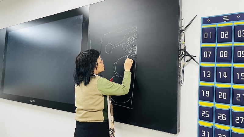 课堂伊始,曹老师展示了师生共创的剪纸成果,惟妙惟肖的作品凝结着师生的共同努力,曹老师既赞扬了同学们的创作进步,也向其他剪纸老师的辛勤付出表达感谢。随后老师对往期作品进行复盘点评,在肯定创作亮点的同时,针对细节处理、纹样设计的不足给出改进建议,让同学们明晰提升方向。