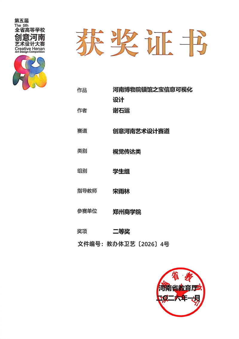 艺术学院始终坚守“以赛促教、以赛促学”的核心育人理念,以各类赛事为实践载体,推动教与学深度融合、协同提质。在此次比赛中,参赛师生立足本土资源,深度挖掘河洛文化、非遗技艺、地方农产品品牌、郑州地铁文化等核心元素,精准把握艺术创意与实用价值的契合点,匠心打造出一批兼具思想深度、艺术质感与创新活力的优秀作品,充分展现了学院师生扎实的专业功底与鲜明的创作特色。