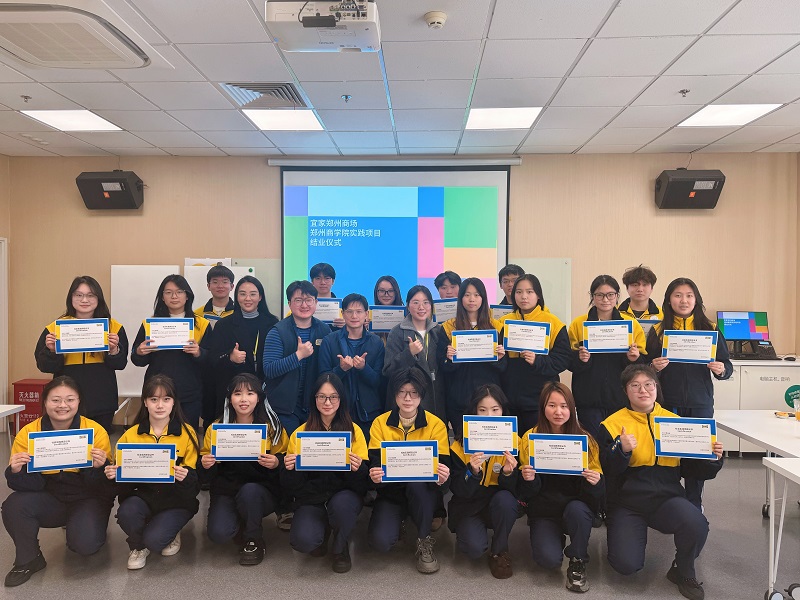 2026年1月15日,本次实践营结业仪式在郑州宜家培训教室1顺利举行。仪式开场后,学生代表分享了实习中的成长感悟,坦言不仅掌握了展场运维、产品陈列等实操技能,更建立了“设计服务生活”的行业思维;随后宜家带教老师、我院老师相继发言,肯定了学员在专业能力与职业素养上的双重提升;最后现场颁发结业证书并拍摄集体合影,为这段兼具专业沉淀与行业体验的实习历程画上圆满句号。