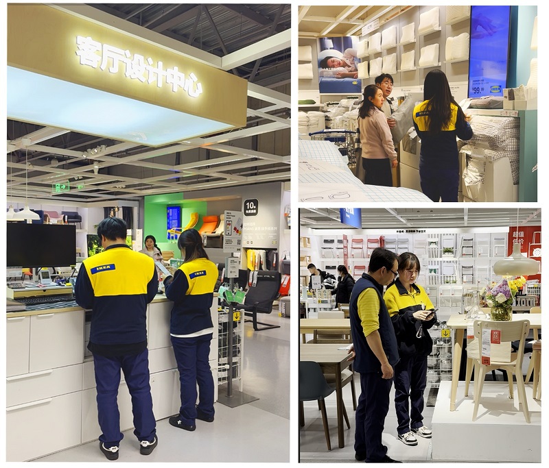 实践营课程紧扣“认知-理念-技能”核心逻辑分层推进:初期聚焦“认知筑基+基础实操”,以宜家体系认知为核心,帮助学生快速熟悉企业行为规范、掌握零售系统操作及终端展场基础运维技能;中期侧重“理念塑造+技能深化”,通过“人与家庭生活”专题课程筑牢“以用户需求为核心”的设计思维,同步开展楼面实践、产品知识学习、专业工具实操等技能模块训练;此次设计实践营全程强化“过程保障+衔接落地”,由宜家部门辅导员跟进实习进度、实时指导优化实践内容,学生严格遵守企业管理规范,在沉浸式场景中实现专业所学与行业实际的有效衔接。
