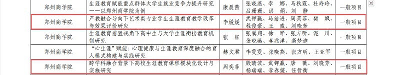 近日,郑州市教育局公布《关于公布2025年度郑州地方高校生涯教育教学改革研究与实践项目立项结果的通知》(郑教高函〔2025〕321号),我院专任教师李媛媛团队、周奕菲团队主持的2项课题双双获批立项,实现了教学科研与思政育人在生涯教育领域的协同突破。