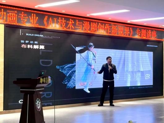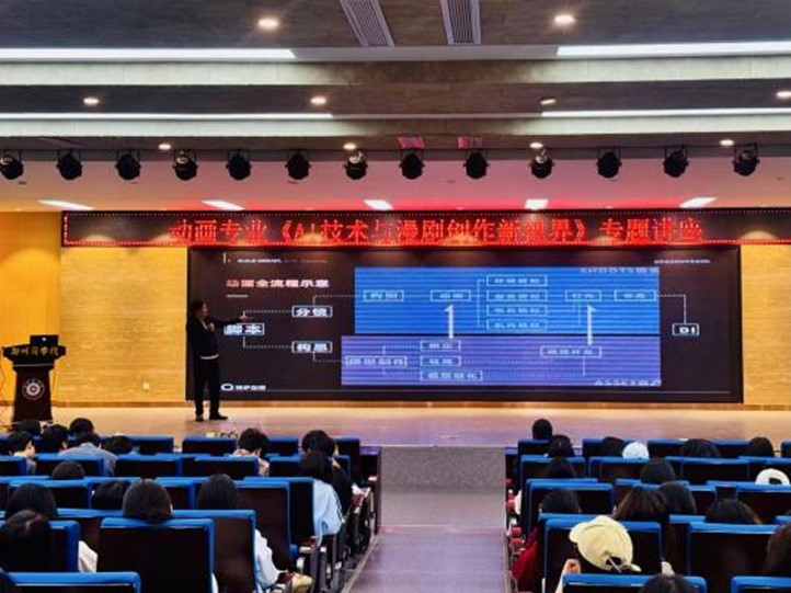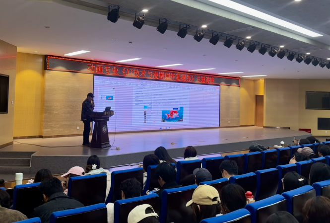 莅校开展《AI技术与漫剧创作新视届》主题讲座。艺术学院动画专业23、24级专业学生齐聚现场,共赴一场技术与艺术交融的学术盛宴。