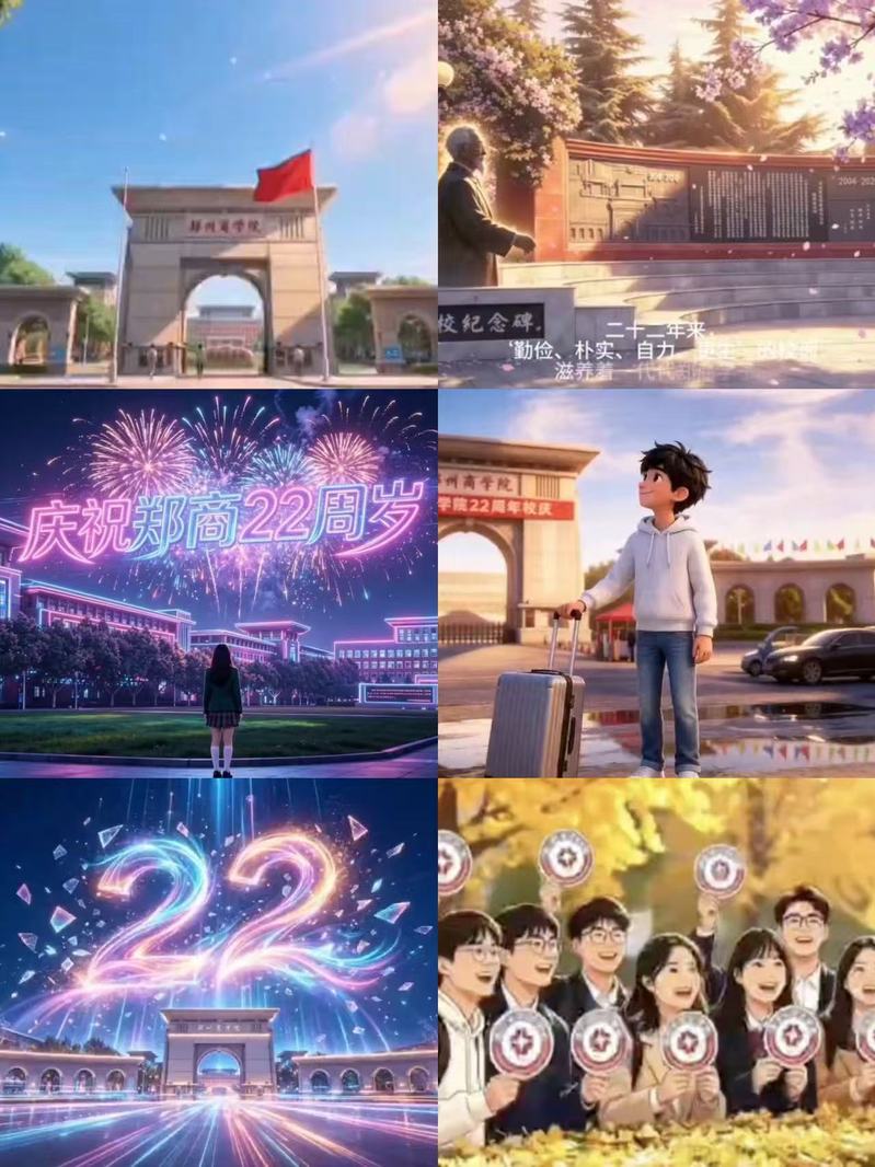 认识实习的核心环节为为期4天的线下授课,由企业老师现场授课,聚焦郑州商学院建校22周年主题,以现场演示、案例拆解形式,拆解AIGC前沿技术,全程围绕AI漫剧创作全流程展开——依次讲解AI漫画剧本生成、剧本人物场景生成、视频生成及AI剪辑合成,全方位展现技术对漫剧生产的革新赋能;学生分组实操,将校庆情怀与数字技术结合,完成AI创意漫剧作品,实现全流程实战训练。