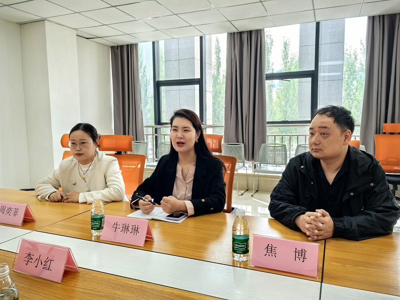 牛琳琳院长首先介绍了艺术学院的整体专业布局、学科建设特色、人才培养模式及近年毕业生就业的整体情况。牛琳琳院长表示,希望以此次走访调研为契机,搭建常态化的校企合作交流平台,实现校企资源共享、优势互补,共同培养符合行业需求的高素质动画专业人才。焦博主任结合动画专业的课程体系、师资力量、学生实践项目成果及毕业生就业方向进行了详细介绍。他表示,动画专业始终以行业需求为核心,锚定市场需求与产业发展趋势,在课程设置上融入了三维建模、动画特效、IP 设计等前沿内容,与企业的业务发展方向高度契合,他期待在学院的统筹指导下,与企业进一步细化合作细节,共同完善实训课程体系,推动优质教学资源与行业岗位需求精准对接,助力毕业生高质量就业。