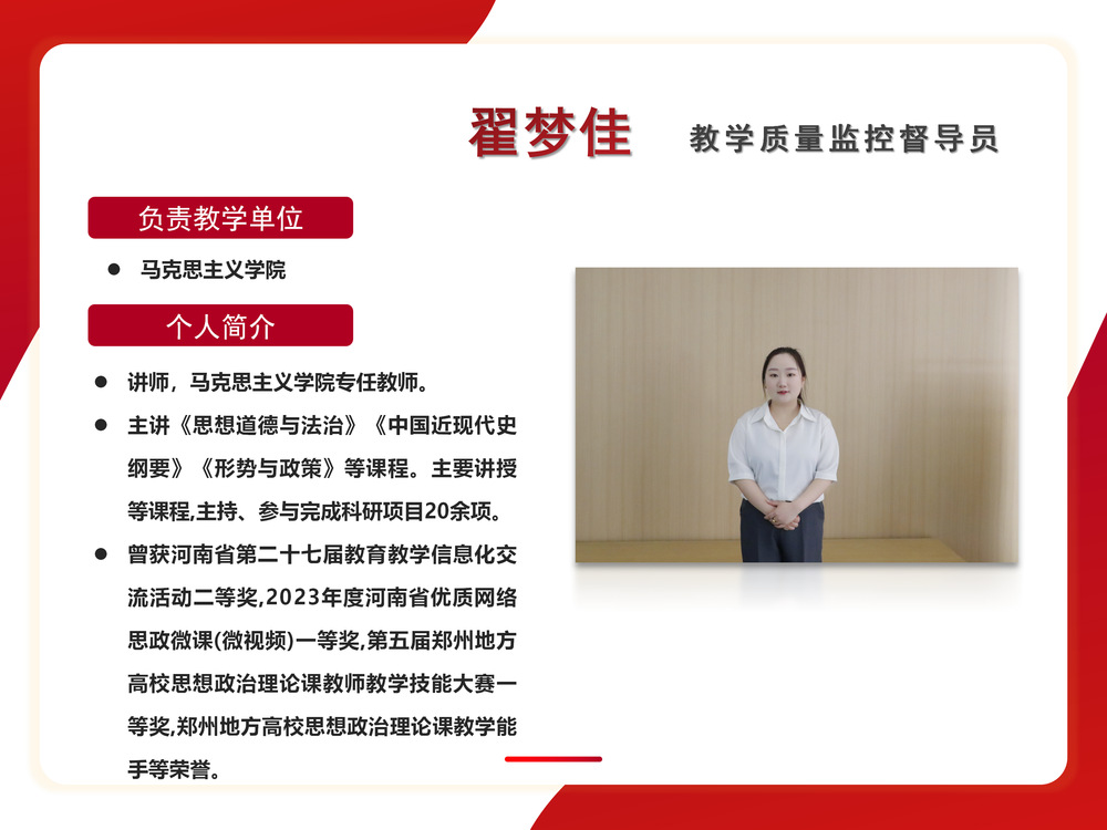 教学质量监控督导员 马克思主义学院 翟梦佳
